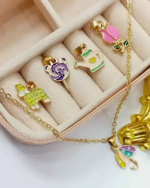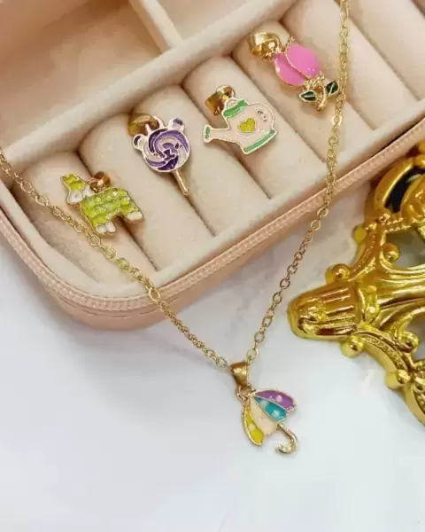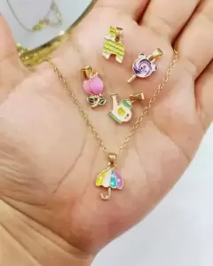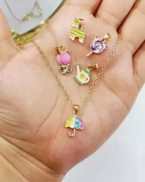 Bellísimo set de cadena con 5 dijes.Aleación enchapado y esmaltado.Largo cadena 42 cms + extensibleCompletamente nuevo, sin detalle y listo para enviar.*PRECIO FIJO POR COMISIÓN*