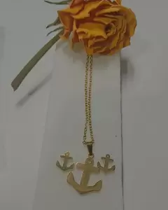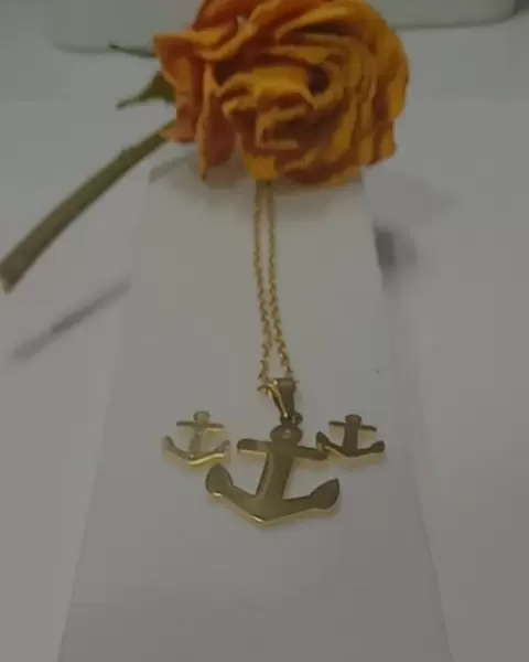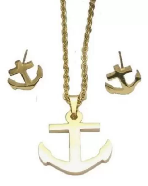 Set de aretes con collar de ancla super comos y le dan un toque a tu look es de acero inoxidable color oro