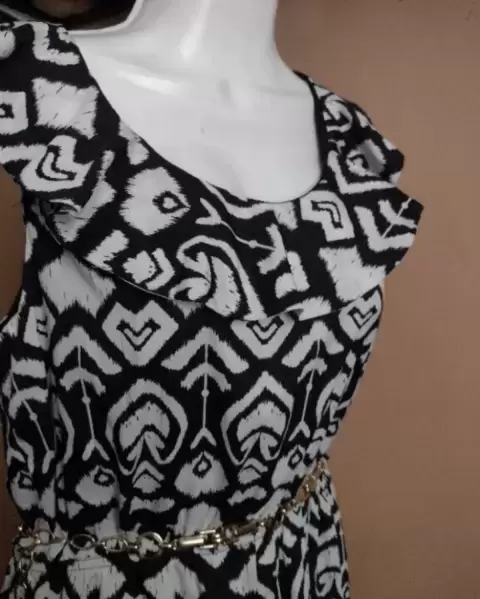 Hermoso Jumpsuit🤩. Es un chors Jumpsuit muy bonito , de color negro con estampado blanco , talla L , elástico en la cintura y escote en La espalda , se uso un rato , sin detalles 👌