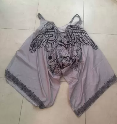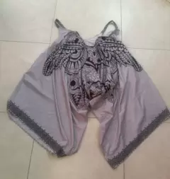 Hermoso palazzo para Dama. Hermoso palazzo para Dama tipo manta sin manga forma asimétrica queda abajo de las rodillas muy padre para usar en la playa color gris tiene un dibujo de búho talla grande