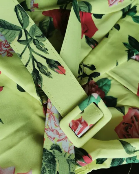Jumper de short falda con cierre en el costado, la tela es estampado de flores incluye cinturón de la misma tela