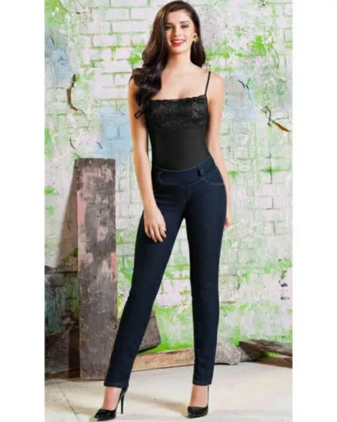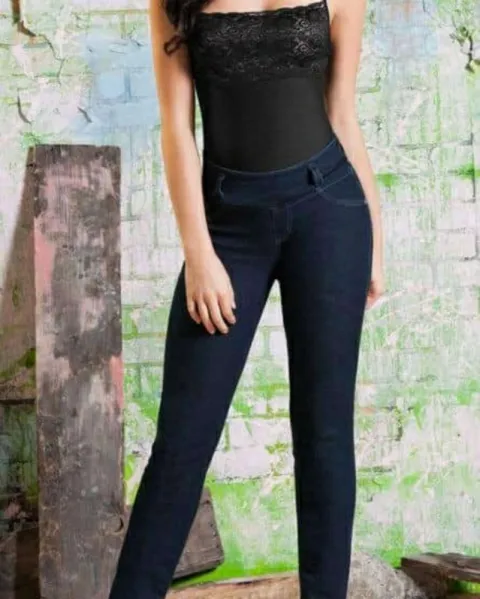 Jumper de mezclilla en la parte del pantalón top tipo faja viene reforzado con broche y cierre talla 11 marca andrea jeans