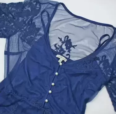 Jumper azul marino de short, tiene tela transparente con tipo encaje y trae forro con tirantes, al frente tiene botones de perlas súper lindo y fresco para la temporada.