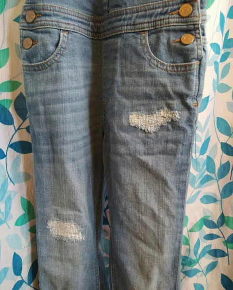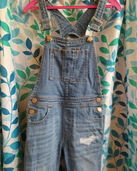 Jumper de pantalón. Es para niña, es talla 8-10 Está en muy buena condiciones, se ve súper bonito en las niñas es entallado, la parte que parece rota es simulada en realidad no está roto de echó tiene buena costura ahí.