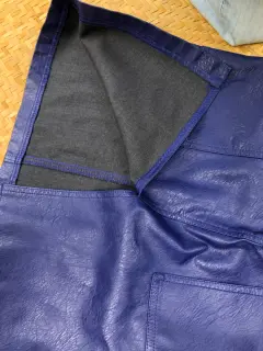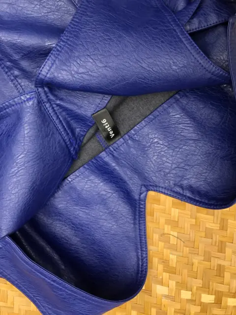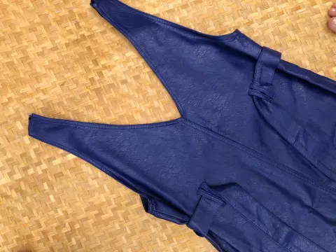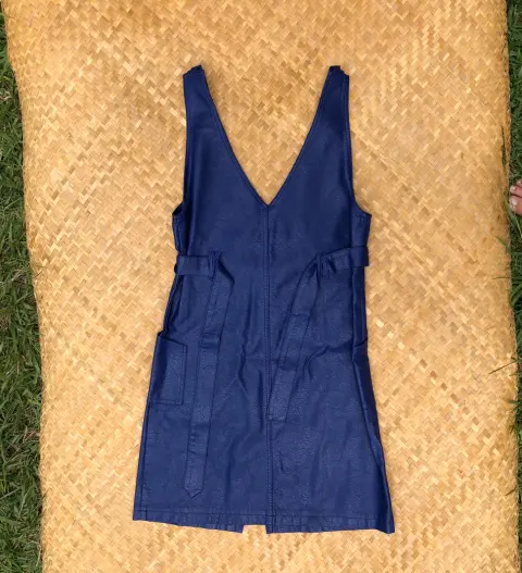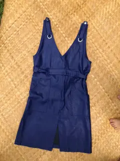 Jumper estilo piel. Jumper con tela imitación piel azul electrico , detalle de cadenita y cinturón .