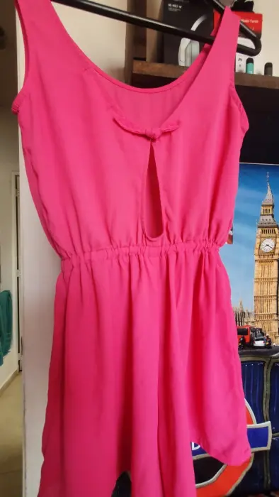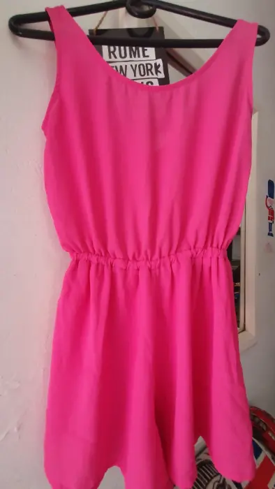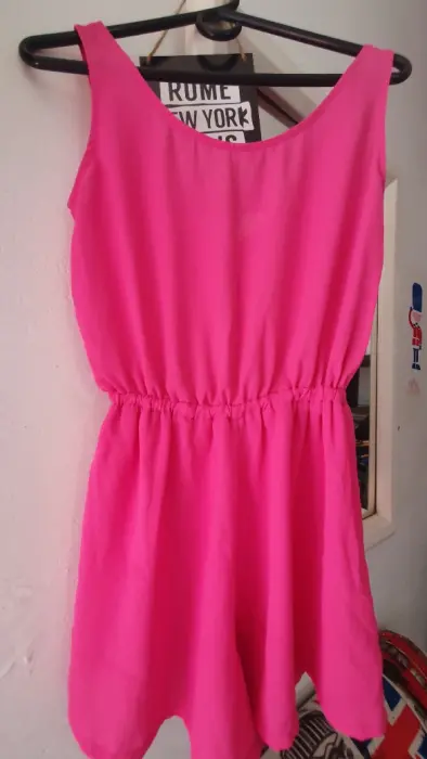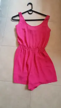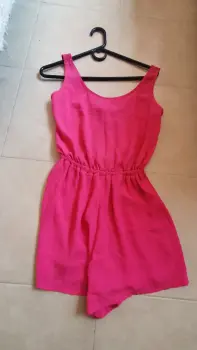 Hermoso jumper en short tela muy delgadita no se transparenta color fushia sin mangas cuello redondo detalla de monitor en la espalda talla chica MARCA EXPRESS