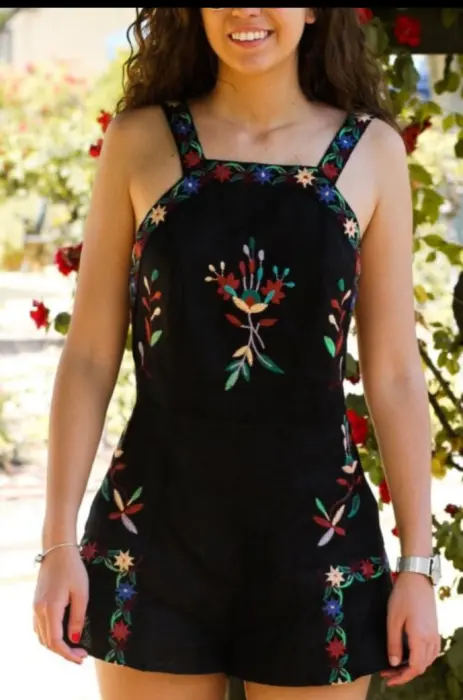 Jumper negro bordado. 📌La tela no se estira, tiene cierre en la espalda 📌La espalda es descubierta 📌Los tirantes son ajustables