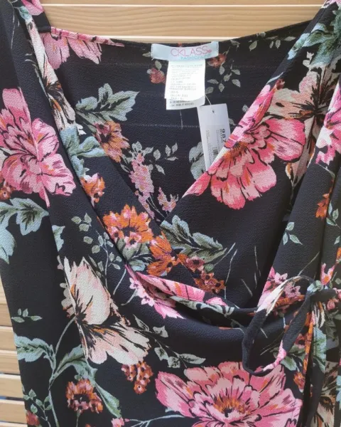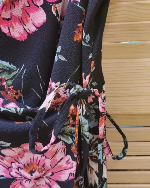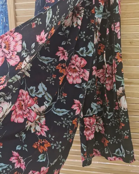 Jumper negro floreado en tela de gasa, excelente estado. Es una tela ligera. Ideal para lugar caluroso. Es bastante cómodo.