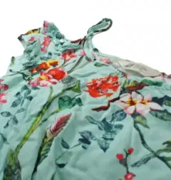 Jumpsuit azul de niña talla 9-10 años. Jumpsuit azul con flores, hojas y pájaros de niña talla 9-10. De la marca H&M con olanes en los hombros. Manga corta muy lindo e ideal para primavera verano.
