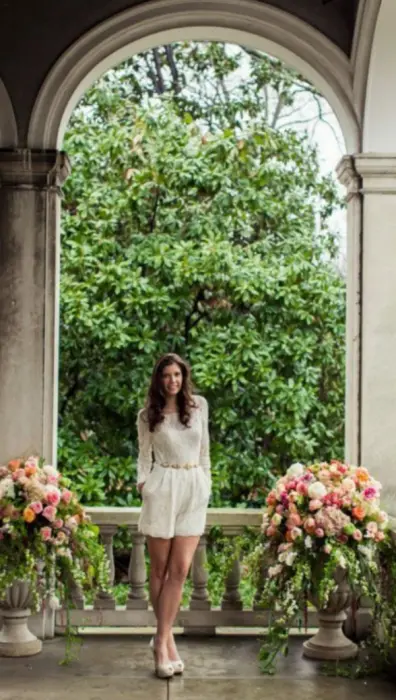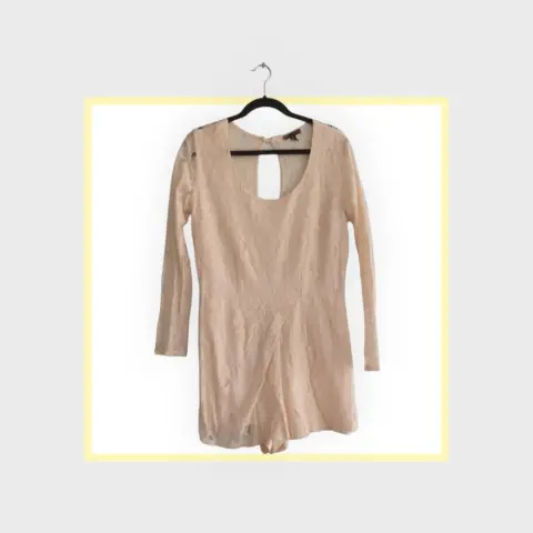 Vestido tipo jumpsuit de encaje con forro y sutil escote en la espalda, lo que lo hace muy cómodo y femenino. Las medidas son las siguientes:Hombro: 41 cmAncho de busto: 50 cmCintura: 42 cmLargo: 60 cmLargo de manga: 60 cmAncho de manga:14 cmCualquier duda y oferta es bienvenida, es una excelente prenda que sin duda destacará tu belleza.