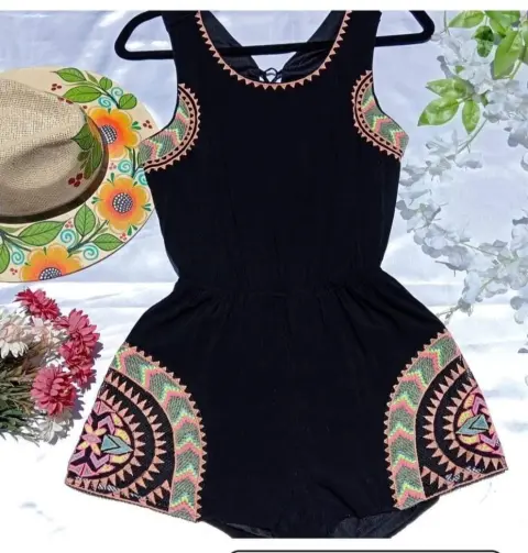 Jumpsuit corto. Mono corto, ideal para la playa, espalda abierta con listón ajustable, botones en hombros