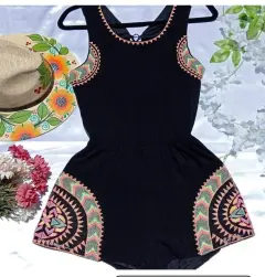 Mono corto, ideal para la playa, espalda abierta con listón ajustable, botones en hombros