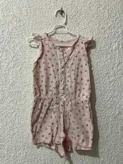 Jumpsuit corto color rosa floreado. Lindo jumpsuit corto en color rosa claro con detalles de flores, muy fresco ideal para esta temporada de calor. Cuenta con broches en la parte de abajo para mayor comodidad.Sin ningún detalle