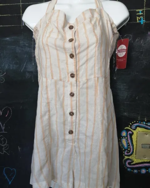 Hermoso jump corto de lino con escote de corazón, elástico por la espalda queda perfecto a M-G **Dice talla Xl** pero yo soy M y me queda justo.