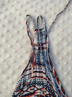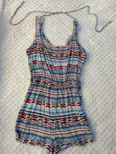 Bonito Jumpsuit o mono de tirantes, la tela es muy fresca y se encuentra en muy buenas condiciones, cuenta con un listón que se amarra en la parte trasera.