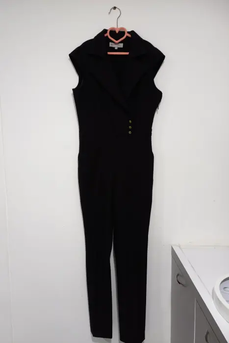 Jumpsuit de vestir con botones dorados al costado, escote en V y pretinas para cinturón
