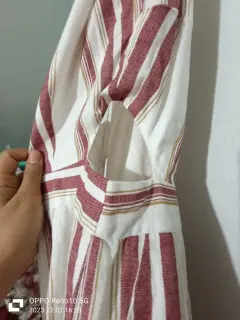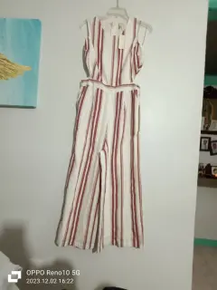Fresco jumpsuit a rayas verticales. Con corte cutout a la cintura. Cierre en la espalda. Con bolsillos laterales. Medidas:Hombros: 34cmAxilas: 46cmCintura: 75cmLargo: 132cm