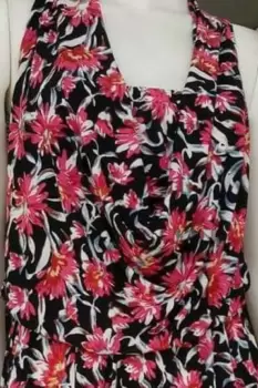 Jumpsuit floral unitalla, tela ajustable, Spandex, le va perfectow a una talla M/L con bolsas laterales, resorte en cintura, y escote de columpio.