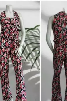 Jumpsuit Floral. Jumpsuit floral unitalla, tela ajustable, Spandex, le va perfectow a una talla M/L con bolsas laterales, resorte en cintura, y escote de columpio.