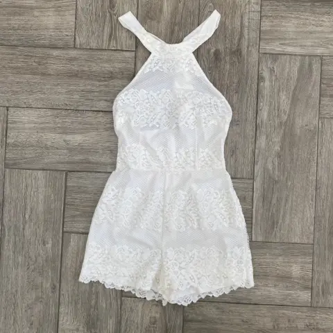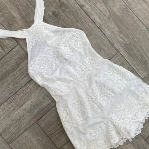 Hermoso jumpsuit encaje bordado suave, con forro en la parte de abajo marca Guess original intacto, cinta para amarrar en cuello
