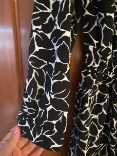 Es muy bonito y se uso poco es blanco con negro, marca talla 6 es M