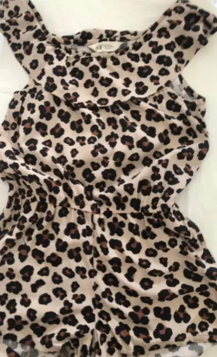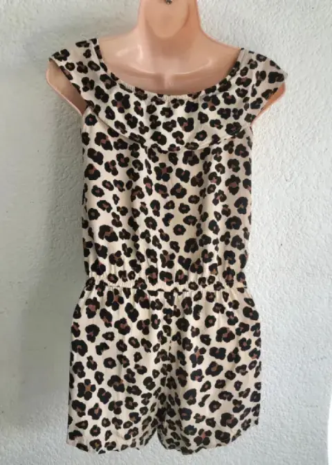 Jumpsuit de shot de leopardo talla 9 años con volados en el score, muy lindo y fresco, ideal para temporada de verano.