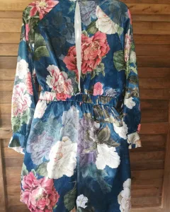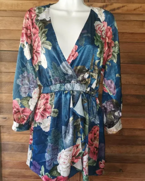 Jumpsuit short floreado. Lindo jumpsuit short efecto vestido, tela tipo seda.