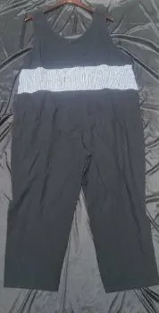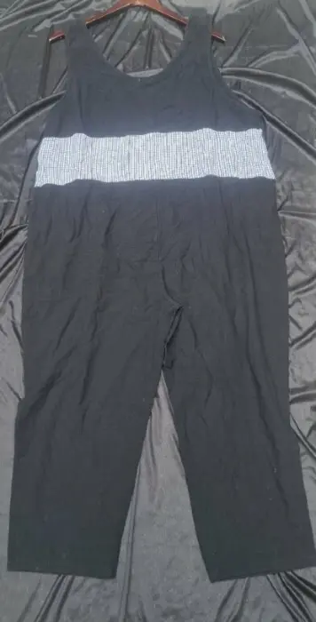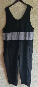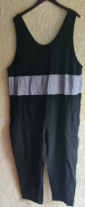 JUMPSUIT TALLA 2XL. JUMPSUIT DE USO, TALLA 2XL, COLOR NEGRO, CON DETALLES AZUL MARINO Y BLANCO,ENTREPIERNA EN PERFECTO ESTADO ÚLTIMA FOTO , DE HOMBRO A HOMBRO 46.5 CM, DE AXILA A AXILA 65 CM, CINTURA 128 CM, CADRTA 130 CM, TRSE BOLSILLOS FUNCIONALES,CORTE RECTO