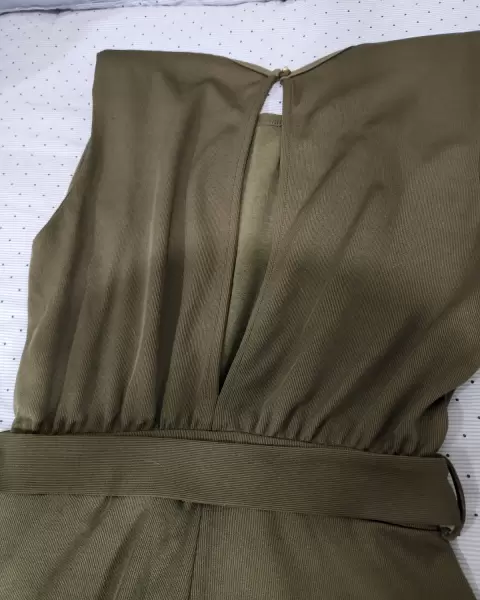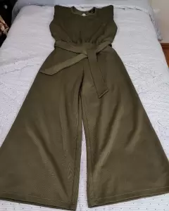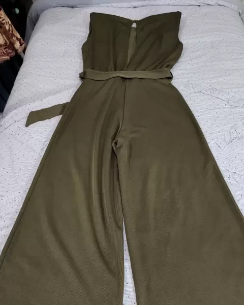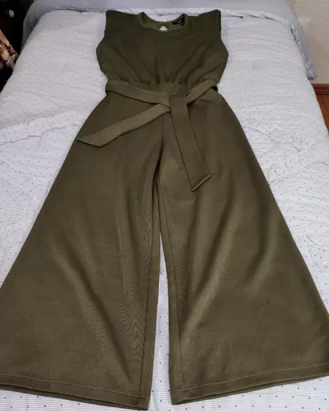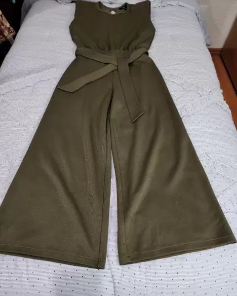 Jumpsuit color verde olivo liso, sin mangas, con hombreras y abertura en la espaldaMuy cómodo y eleganteTalla S/MNUEVO SIN ESTRENAR