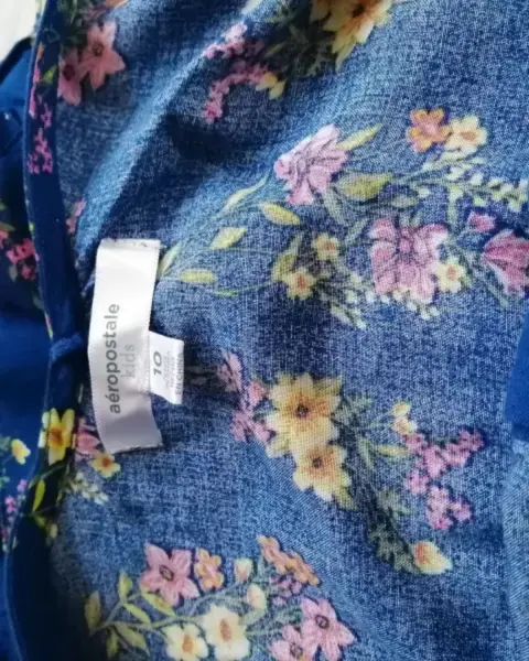 Jumpsuits de short Aéropostale. Jumpsuits de short y tirantes color azul con flores muy cómodo, resorte y cinturón de la misma tela con olanes en el short.Los tirantes tienen forma de moño