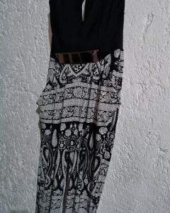 Jumpsuits estampado. Hermoso Jumpsuits estampado, straple en top negro pantalon estampado