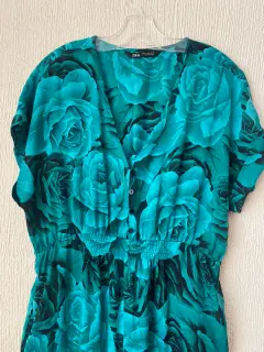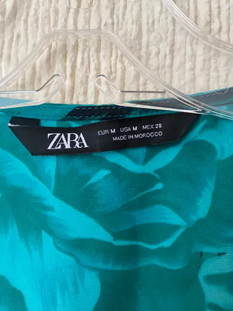 Hermoso palazzo verde con estampado de flores de la marca Zara, talla M.Escote en V con botones y bolsas a los lados. En excelente estado.