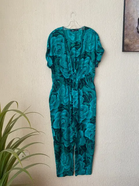 Jumsuit/palazzo verde de Zara. Hermoso palazzo verde con estampado de flores de la marca Zara, talla M.Escote en V con botones y bolsas a los lados. En excelente estado.