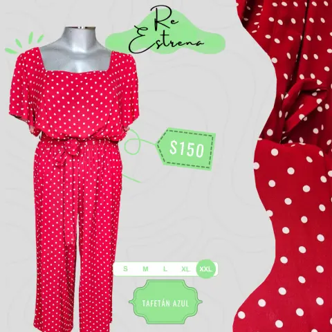 Jumpsuit de lunares blancos color rojo súper cómodo, súper bonito y sobre todo, súper barato
