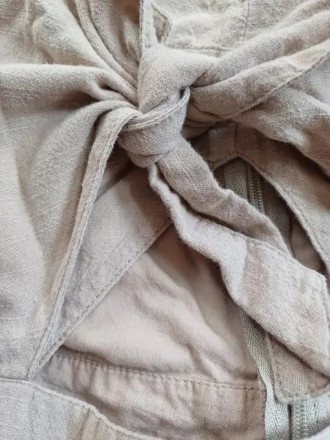Mono de lino. Mono corto color café claro, de lino, tirantes con nudo en la parte frontal, con orificio en la parte frontal, los tirantes son ajustables, talla 0 (xs) marca Aberocrombie & Fitch, completamente nuevo.