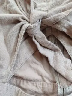 Mono corto color café claro, de lino, tirantes con nudo en la parte frontal, con orificio en la parte frontal, los tirantes son ajustables, talla 0 (xs) marca Aberocrombie & Fitch, completamente nuevo.