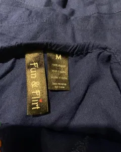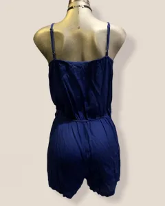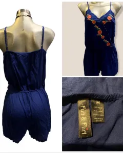 Mono de tirantes azul. Mono de tirantes marca fun&flirt talla mediana cuello en v con bordado de flores y skakira tiene bolsas a los lados con un largo de 82cm entre axila 49cm axila 25cm cintura de 36cm estira a 50cm de axila abajo 57cm súper fresco