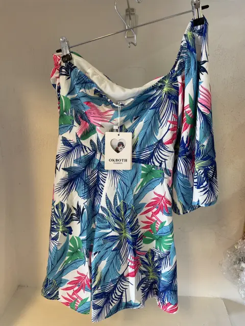 Mono de un hombro. Mono de un hombro con cierre al costado talla S estampado floral.