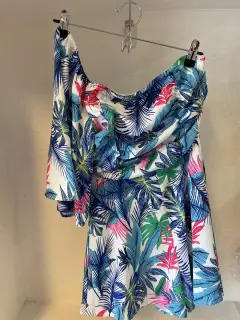 Mono de un hombro con cierre al costado talla S estampado floral.