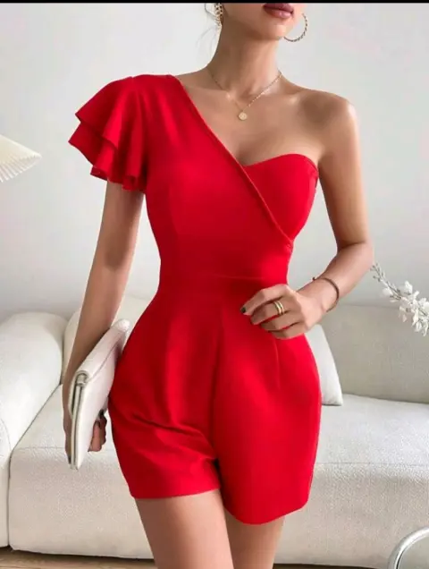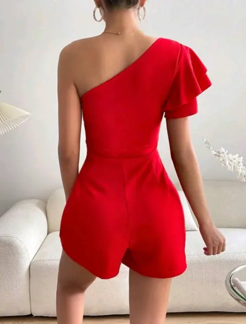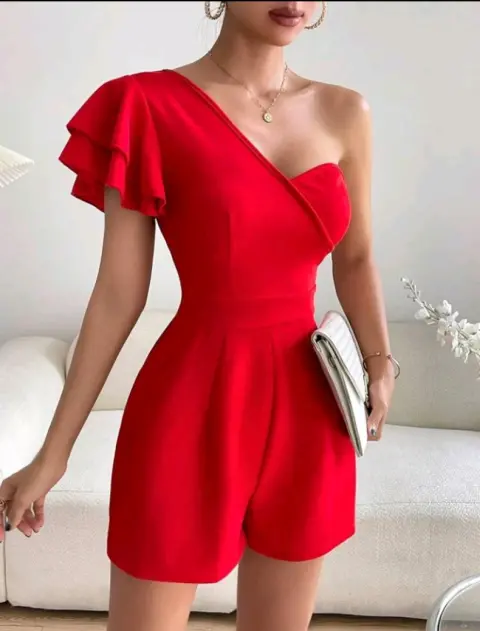 Mono de un hombro manga mariposa. Talla mediana , totalmente nuevo,su tela es 100%poliester liso,es casual rojo sin forro,talle alto manga corta