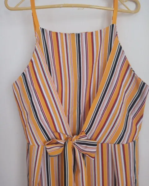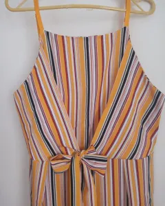 Mono lazo delantero a rayas bohemio. Mono amarillo a rayas con lazo delantero