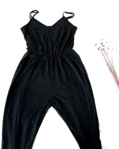 MONO NEGRO PLISADO. Mono holgado, algodón con plizado en la parte de la cintura . Perfecto para chicas con curvas, por los pliegues.La talla es chica pero va hacia la mediana