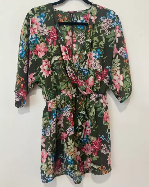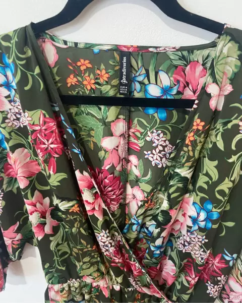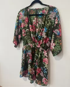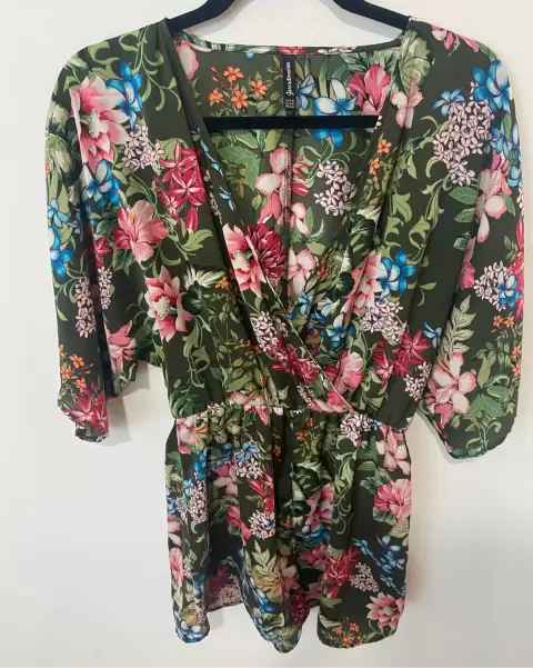 Bellísimo Jumpsuit Stradivarius color verde de flores, mono completo con cintura elástica y mangas medias muy moderno mide 44 cm de axila a axila , y 83 cm de largo cómodo