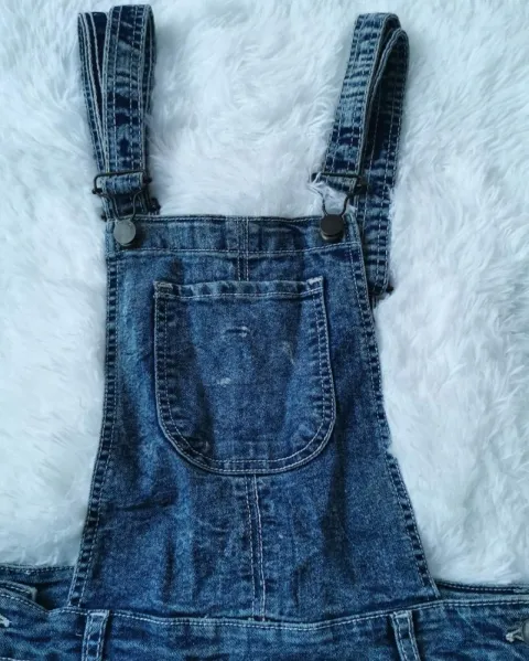 Overol de mezclilla. Es seminuevo, sólo se utilizó dos horas para una sesión,solo tiene una puesta, está en excelentes condiciones, talla chica. Tiene botones a los lados y se ajustan los tirantes.