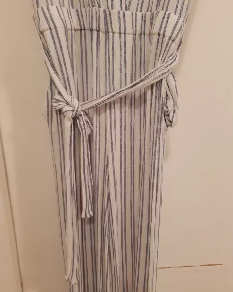 Palatzo blanco con azul, super fresco, entalla bien, puede ser formal con un saquito o casual dependiendo del calzado que le pongas, está padrisimos, listo para una ocasión especial