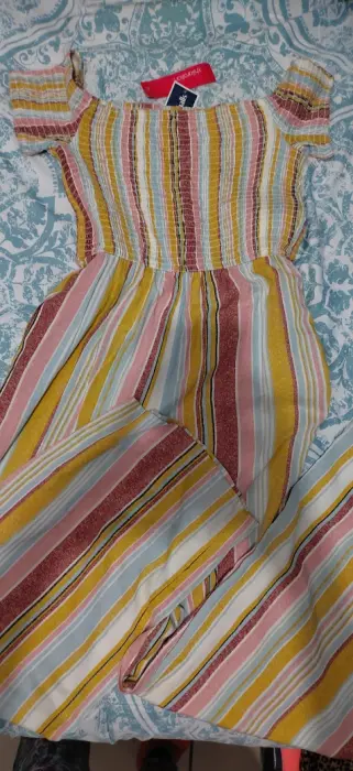 Esta super padre la tela de arriba es estrech y de abajo no pero es muy fresca de calidad boutique nuevo