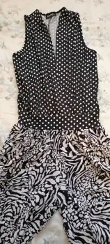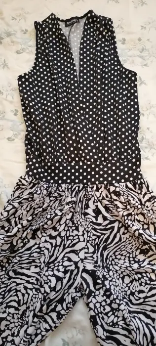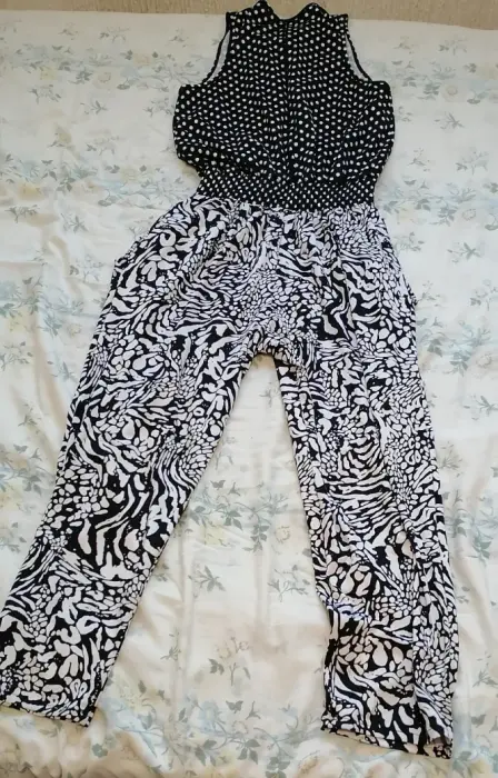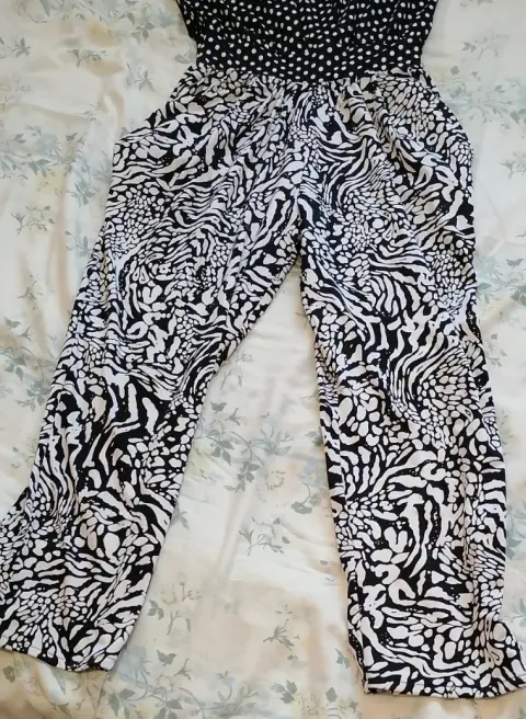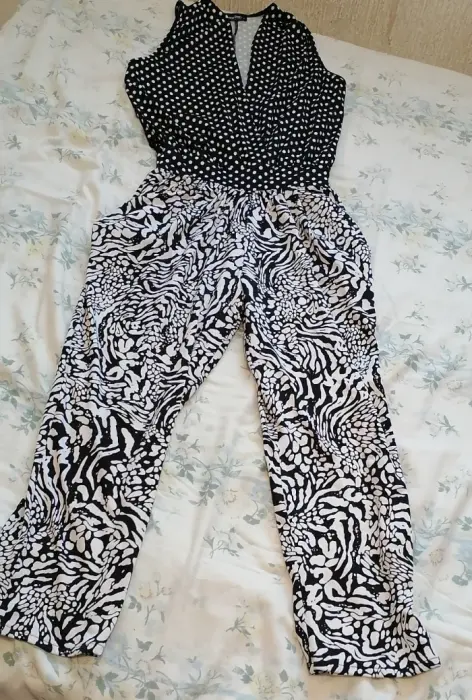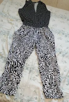Palazo completo para mujer. Si corte es V, su tipo de tela es lisa, sus tirantes son gruesos,, trae bolsas en la parte de enfrente, en la parte de atrás trae su resorte por la espalda, esta intacto solo se puso una vez