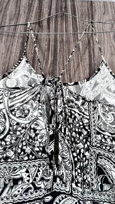 Palazzo frasco de tirantes. Palazzo fresco se amarra de espalda bolsas a los lados, resorte en los tobillos, blanco con negro súper casual