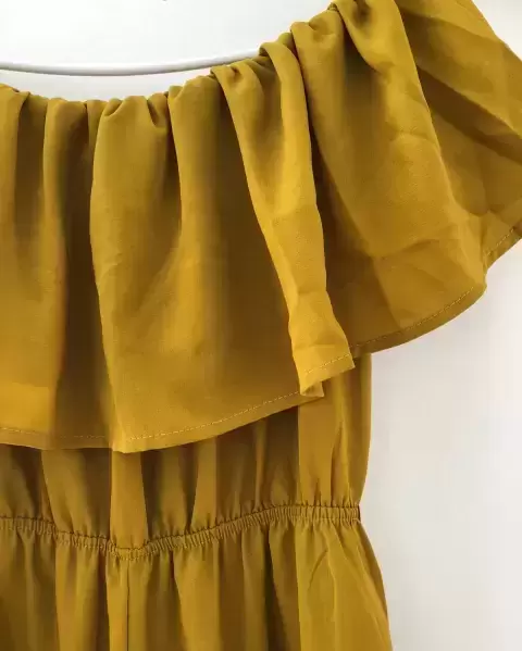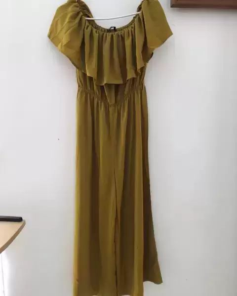 Palazzo Jumpsuit color Mostaza. Hermoso palazzo, jumpsuit, con elástico a la cintura, tiene elástico en la parte superior que permite ajustar el Olán y bajar a una posición cómoda , Nuevo , marca SHEIN
