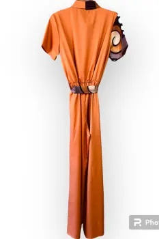 PALAZZO MULTICOLORColor coral con estampado, la parte trasera es lisa. increibleCon cinturónCorte recto, resorte en cintura. con botonadura al frenteTalla L, o grandePecho 94cmLargo 152 cmContorno cintura 78 a 106cm, por el resorteTela es poliester con elastano
